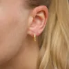 Zirkon Kreole in vergoldetes Messing mit strukturierter Oberfläche und Facettenschliff weißem Zirkon.