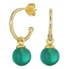 12 mm Aqua Bergkristall Halbkreolen in vergoldetem Silber mit polierter Oberfläche und 2 glatt grünen Aqua Bergkristallen.