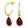 12 mm rotem Bergkristall Kreole in vergoldetem Silber mit polierter Oberfläche und 2 glatt roten Bergkristallen.
