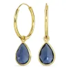18 mm blauem Bergkristall Kreole in vergoldetem Silber mit polierter Oberfläche und 2 glatt blauen Bergkristallen.