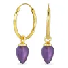 18 mm violettem Bergkristall Kreole in vergoldetem Silber mit polierter Oberfläche und 2 glatt violetten Bergkristallen.