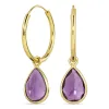 18 mm violettem Bergkristall Kreole in vergoldetem Silber mit polierter Oberfläche und 2 glatt violetten Bergkristallen.