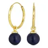 18 mm synthetisch blauem Saphir Kreole in vergoldetem Silber mit polierter Oberfläche und 2 glatt blauen synthetischen Saphiren.