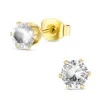 5 mm Wasserfester Zirkon Ohrstecker in vergoldetem Stahl mit polierter Oberfläche und 2 Facettenschliff weißen Zirkonen.