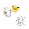 8 mm Wasserfester Solitärohrstecker in vergoldetem Stahl mit polierter Oberfläche und 2 Facettenschliff weißen Zirkonen.