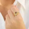 blauem Ring aus vergoldetes Messing mit polierter Oberfläche und 1 dunkelblauen dunkelblauen Bergkristallen mit glatt und 2 blauen Bergkristallen mit glatt und 6 hellblauen Bergkristallen mit glatt .