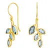 Blatt dunkelblauem Bergkristall Ohrringe in vergoldetem Silber mit polierter Oberfläche und glatt hellblauem Bergkristall.
