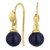 Blatt synthetisch blauem Saphir Ohrhaken in vergoldetem Silber mit polierter Oberfläche und 2 glatt blauen synthetischen Saphiren.
