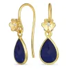 Blumen Jadestein Ohrhaken in vergoldetem Silber mit polierter Oberfläche und 2 glatt blauen Jadesteine und 2 Facettenschliff weißen Zirkonen.