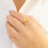 Blumen Ring aus vergoldetes Messing mit strukturierter und polierter Oberfläche.
