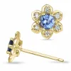 Blumen Tansanit Brillantohrringen in 9 Karat Gold mit Tansanit und Diamant