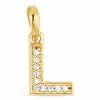 buchstab l Zirkon Anhänger aus vergoldetem Sterlingsilber mit polierter Oberfläche und weißem Zirkon mit Facettenschliff.