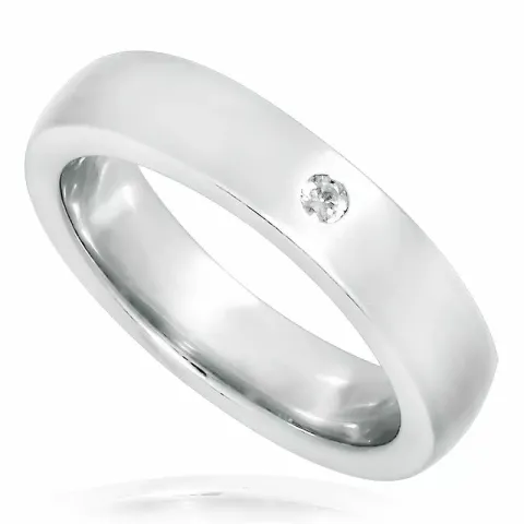 breit weißem Zirkon Ring aus rhodiniertem Silber mit polierter Oberfläche und 1 weißen Zirkonen mit Facettenschliff.