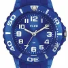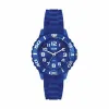 Das Armband der Uhr ist aus blaumetallic Silikon.