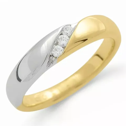 Diamant Ring in 9 Karat Gold- und Weißgold mit polierter Oberfläche und 3 Brillantschliff Diamanten in Wesselton/SI
