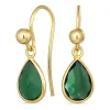 Tropfen grünem Onyx Ohrhaken in vergoldetem Silber mit polierter Oberfläche und 2 glatt grünen grünen Onyxen.