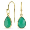 Tropfen grünem Onyx Ohrringe in vergoldetem Silber mit polierter Oberfläche und 2 glatt grünen grünen Onyxen.