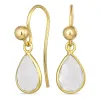 Tropfen Mondstein Ohrhaken in vergoldetem Silber mit polierter Oberfläche und 2 glatt weißen Mondsteinen.