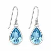 Tropfen Ohrhaken in Silber mit polierter Oberfläche und 2 Facettenschliff blauen Bergkristallen.