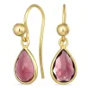 Tropfen pink Bergkristall Ohrhaken in vergoldetem Silber mit polierter Oberfläche und 2 glatt pink Bergkristallen.