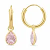 14 mm Tropfen pink Zirkon Kreole in vergoldetem Silber mit polierter Oberfläche und 2 Facettenschliff pink Zirkonen.