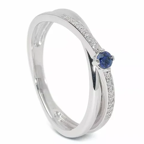 echten blauem Saphir Ring aus 9 Karat Weißgold mit polierter Oberfläche und 1 blauen Saphiren mit Facettenschliff und weißem Zirkon mit Facettenschliff.
