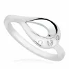 Einfacher Tropfen weißem Zirkon Ring aus rhodiniertem Silber mit polierter Oberfläche und 3 weißen Zirkonen mit Facettenschliff.
