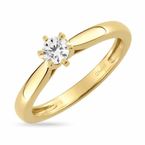 Solitärring aus 9 Karat Gold mit polierter Oberfläche und 1 weißen Zirkonen mit Facettenschliff.