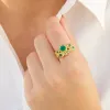 grünem Ring aus vergoldetes Messing mit polierter Oberfläche und 2 grünen Aventurinen mit glatt und 3 grünen Onyxen mit glatt und 4 hellblauen Bergkristallen mit glatt .