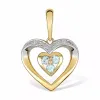 Herz Anhänger aus 9 Karat Gold und 9 Karat Weißgold mit polierter Oberfläche und 2 weißen Zirkonen mit Facettenschliff und 3 blauen Topasen mit Facettenschliff.