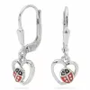 Herz Ohrringe in Silber mit polierter Oberfläche und glatt Emaille und glatt rotem Emaille.