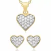 Herz Set mit Ohrringe und Halskette in vergoldetem Sterlingsilber mit und Facettenschliff weißem Zirkon.