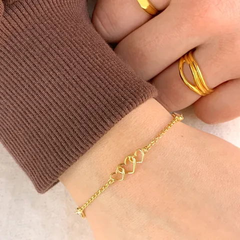 Herz Armband aus vergoldetem Sterlingsilber und Anhänger aus vergoldetem Sterlingsilber mit polierter Oberfläche.