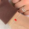Herz Armband aus Silber und Anhänger aus Silber mit polierter Oberfläche und rotem Emaille mit glatt und.