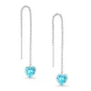 Herz lange ketten ohrringe in Silber mit polierter Oberfläche und 2 Facettenschliff dunkelblauen Zirkonen.