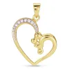 Herz Mutter und Kind Anhänger aus vergoldetem Sterlingsilber mit polierter Oberfläche und weißem Zirkon mit Facettenschliff.