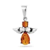 Herz Engel Bernstein Anhänger aus Silber mit polierter Oberfläche und 1 rotbraunem Bernsteinen mit Cabochon-Schliff.