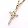 infinity Kreuz Anhänger aus 9 Karat Gold mit polierter Oberfläche und 12 weißen Zirkonen mit Facettenschliff.