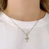 Kreuz Anhänger aus 9 Karat Gold mit polierter Oberfläche und 11 weißen Zirkonen mit Facettenschliff.