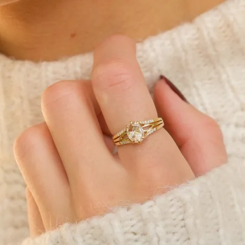 Quarz Diamantring in 14 Karat Gold 0,90 ct 0,12 ct