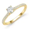 lab grown Diamant Ring in 14 Karat Gold mit polierter Oberfläche und 1 Brillantschliff lab grown Diamanten in Wesselton/VS und 26 Brillantschliff lab grown Diamanten in Wesselton/VS