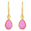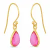 lange Tropfen Ohrringe in vergoldetem Silber mit polierter Oberfläche und 2 Facettenschliff pink Quarzen.