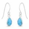 lange Tropfen Ohrringe in Silber mit polierter Oberfläche und 2 Facettenschliff grünen Türkisen.