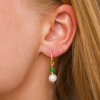 lange grünem Aventurin Ohrringe in vergoldetem Sterlingsilber mit polierter Oberfläche und 2 glatt grünen Aventurinen 2 weißen Perlen.
