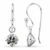 lange runder Zirkon Ohrringe in Silber mit polierter Oberfläche und 2 Facettenschliff weißen Zirkonen.