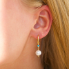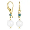 hellblauem Bergkristall Ohrringe in vergoldetem Silber mit polierter Oberfläche und 2 glatt hellblauen Bergkristallen 2 weißen Perlen.