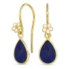 Marguerite Jadestein Ohrhaken in vergoldetem Silber mit polierter Oberfläche und 2 glatt blauen Jadesteine.