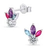 mehrfarbigen Ohrstecker in Silber mit polierter Oberfläche und Facettenschliff weißem Zirkon und glatt rotem synthetische Rubin und Facettenschliff violettem Zirkon und glatt blauem synthetischer Spinell.