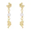 Nava Ohrringe in vergoldetem Sterlingsilber mit 2 weißen Shell Perlen. Modell: Kaa