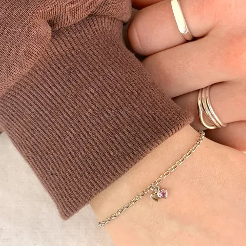 NORDAHL ANDERSEN Herz Armband in rhodiniertem Silber mit und 1 Facettenschliff rosa Zirkonen.